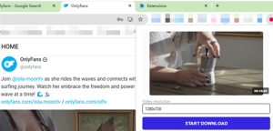 Locate to the source page, play the video and click on the “OnlyFans Video Downloader” extension in the menu bar at the top right of the browser. It will detect the downloadable video automatically, click on the “Start Download” to initiate the progress.