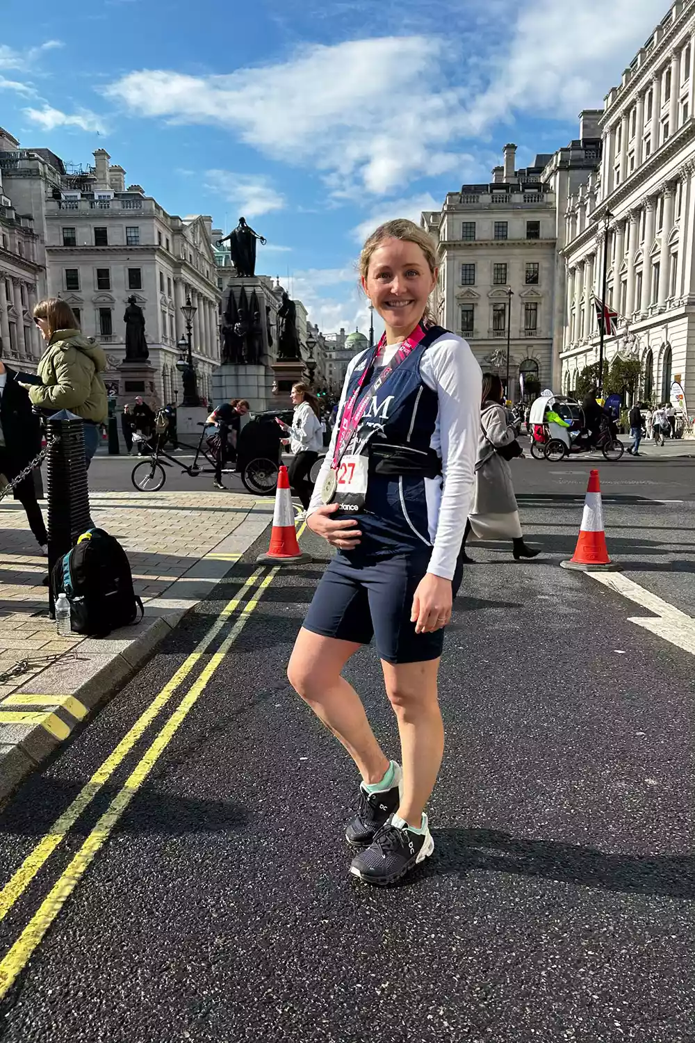 • At 28, she crashed a Bloomberg party in pajamas, her post-run poise passing as power attire.